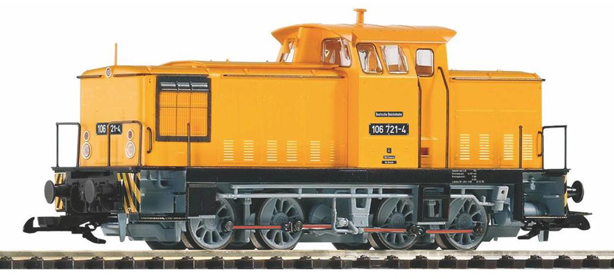 | Descrição breve | classe locomotiva diesel 106 do DR, época IV"Com o modelo do BR 106, PIKO oferece outro clássico do DR e, portanto, atende aos desejos de inúmeros entusiastas de jardinagem. O modelo fino e robusto convence com máxima confiabilidade, rolamento de esferas, conjuntos de rodas cromadas e equipamentos de cabine de um motorista com um driver de motor. Muitos detalhes aplicados individualmente, como guidão e limpadores completam a aparência atraente da locomotiva shunting. O modelo é preparado para uma adaptação fácil de um decodificador digital e som. O BR 106 do PIKO tem forças trativas suficientemente altas e excelentes características de condução para cada aplicação prototípica. " |